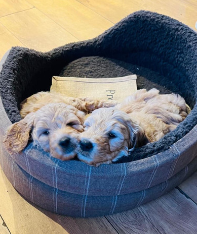 “I have one of Vera’s last litter of puppies and can confirm she’s brought me great joy. Vera was a brilliant Mum ably assisted by Betty who has the patience of a saint! The pups are brought up in a warm, loving environment and this is reflected in their beautiful personalities. My puppy is funny, full on, smart, very affectionate and loving. Likes people and other dogs. Drives me crazy but makes me laugh every day. Life isn’t dull with a doodle! Paul and Dawn are very supportive and hands on, again this is reflected in their own lovely dogs, and confident happy puppies."